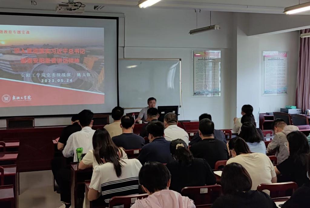 24日下午,姚玉钦以“深入贯彻落实习近平总书记视察安阳重要讲话精神”为题,为电子信息与电气工程学院全体教师党员讲党课,学院领导班子及全体教师党员共计40余人参加。