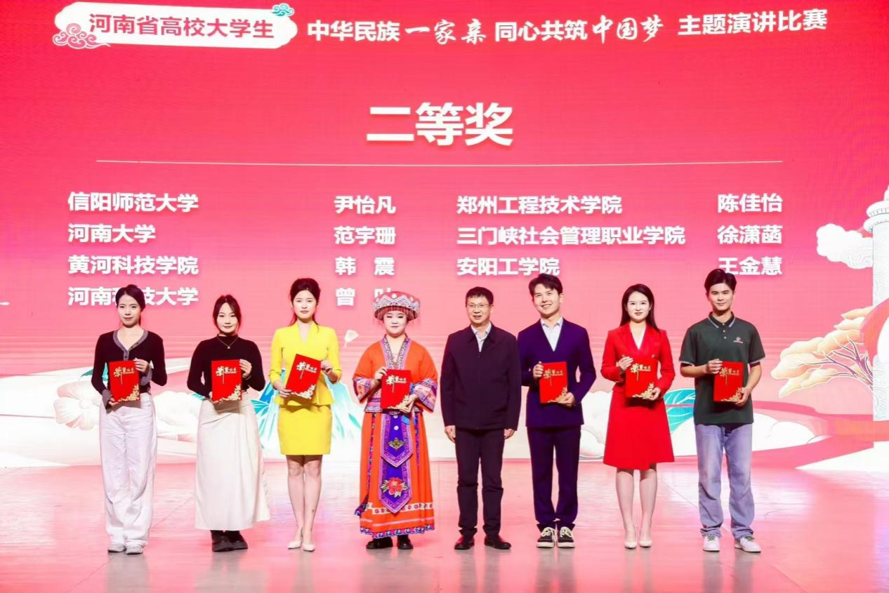 12月4日,由中共河南省委教育工委、河南省教育厅主办的河南省高校大学生“中华民族一家亲,同心共筑中国梦”主题演讲比赛决赛在河南师范大学举行。我校文化传媒与航空服务学院学生王金慧荣获二等奖,该作品由教师刘飞指导完成。